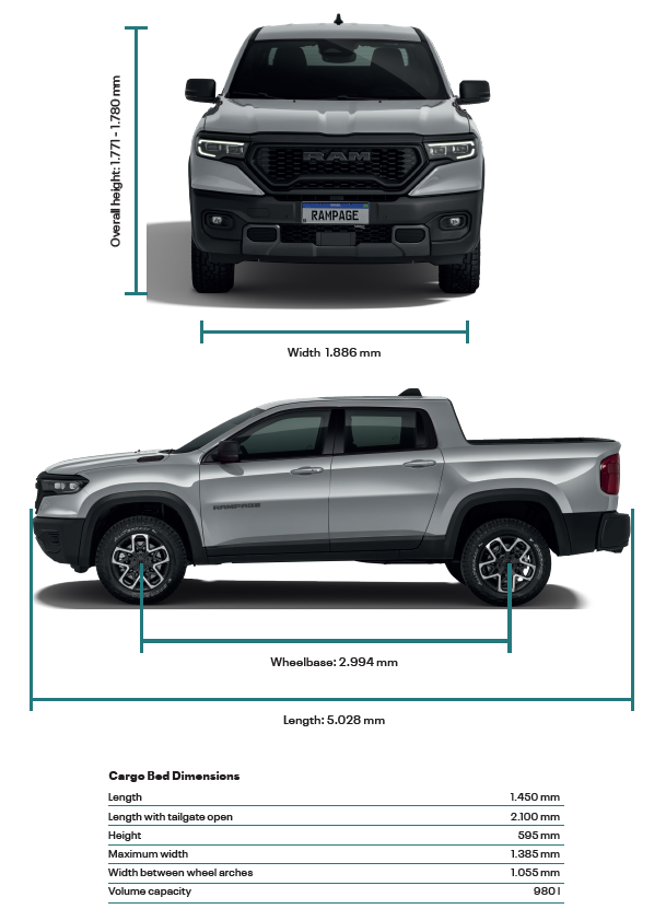 RAM Rampage kombinerer plassen du trenger til arbeid, styrken du forventer, og smidigheten og selvtilliten til å takle stier, fjellveier og smale skogsveier uansett hvor reisen din tar deg. Alt pakket inn i den umiskjennelige RAM-stilen, der solid kapasitet møter komfor sin gir deg både friheten og kreftene du trenger.